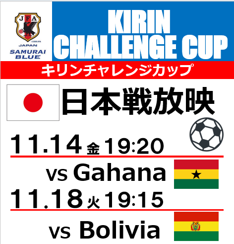 サッカー キリンチャレンジカップ、野球 RAXUS侍ジャパン、バスケFIBAワールドカップ地区予選の放映決定!
